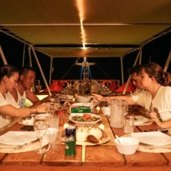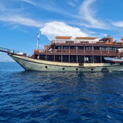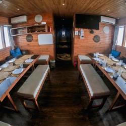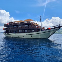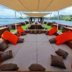 Oceanpro II is a deluxe boat type is located in Labuan Bajo. This boat is specially operated to take tourist around and explore the Komodo National Park and the island around it. The Oceanpro II boat has 10 Cabins with a capacity of 20 passengers and in each rooms are complete with air conditioning consisting of 5 double beds, 5 bunked beds each containing 2 peoples.All rooms with en suite bathrooms, and the boat are equipped with navigation and safety equipment, indoor & outdoor restaurant and, spacious sundeck roof top complete with mattresses, beanbags.