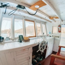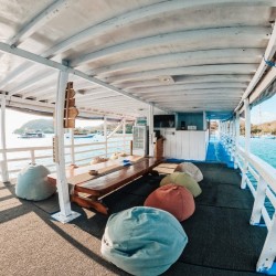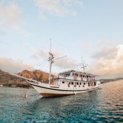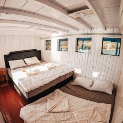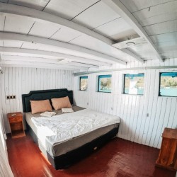 The semi-pinisi cruise boat Lamborajo I is a tourist boat that sails around the Komodo National Park area. This boat is specifically for tourists who want to sail to enjoy the natural beauty and sea of the Komodo National Park and its surroundings. The Lamborajo I boat is 24.28 meters long, 6.2 meters wide with a 6D16 cylinder mitsubishi engine with a speed of 6-9 knots. This boat is also reinforced with a Yamaha 15 HP engine equipped with a Garmin GPS navigation system, MAP 585, SSB radio and 5000 liters of water supply. In total there are 4 boat cabins and all are air-conditioned, consisting of a bunk beds and a double beds plus an extra double beds including 2 outside bathrooms. Boat facilities are in the form of safety equipment such as life jackets, speed boats, lazy chairs, TV, fridge, sundeck, beanbags and dispensers and dining room.