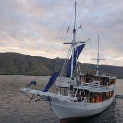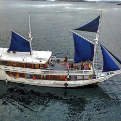 This boat is based in Labuan Bajo, made in 2017 with a length of 26 meters and a width of 5 meters. The main engine is a 6-cylinder Mitsubishi 6D16 engine with a speed of 7-9 knots and 3500 liters of water supply. This boat has 4 full AC cabins plus 4 extra beds, with a capacity of up to 20 passengers for overnight. The boat's facilities are 2 toilets and shared bathrooms,speedboat, towel,blanket,safety equipment, such as life jackets, life buoys and 3 units of fire extinguishers.There is 1 dining room, roof top sundeck complete with mattress and beanbag for sunbathing or relaxing.